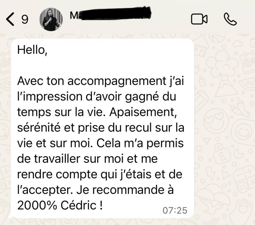 Cet accompagnement est conçu pour les personnes qui n’ont pas le temps. Le but n’est pas de vous occupez l’esprit mais de vous libérer de l’espace mentale. Vous avancez à votre rythme avec des étapes courtes, ciblées et puissantes. Quelques heures suffisent à vous faire gagner des mois d’épuisement.